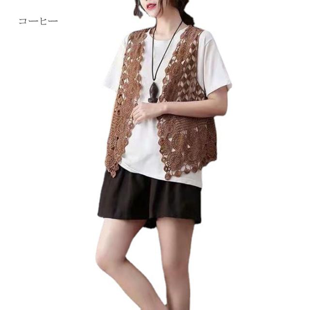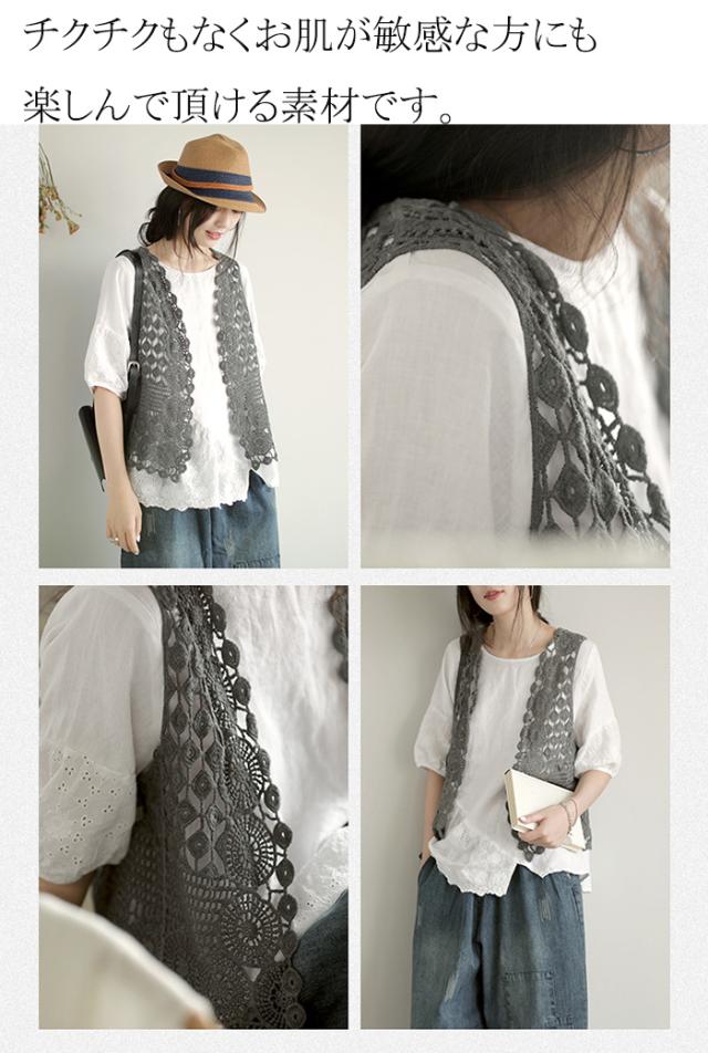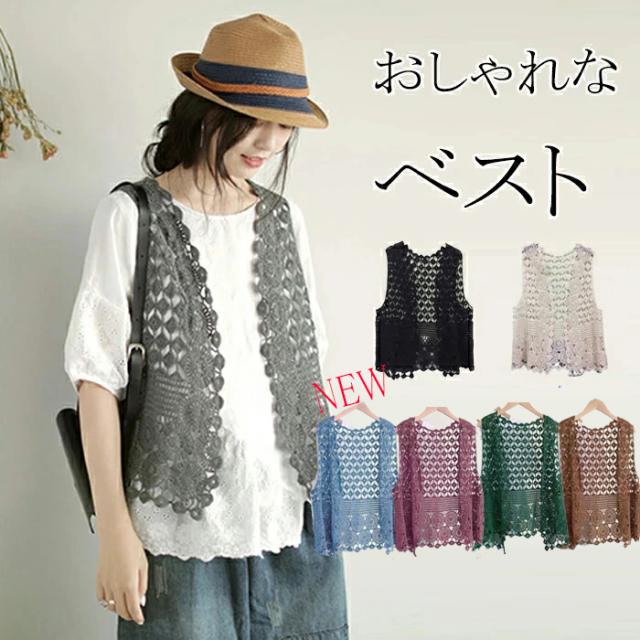 ベスト レースベスト レディース 重ね着 ノースリーブ 前開き 春 夏 40代 花柄レース タンクトップ トップス vネック 透かし編み 薄手 タンク 春コーデ