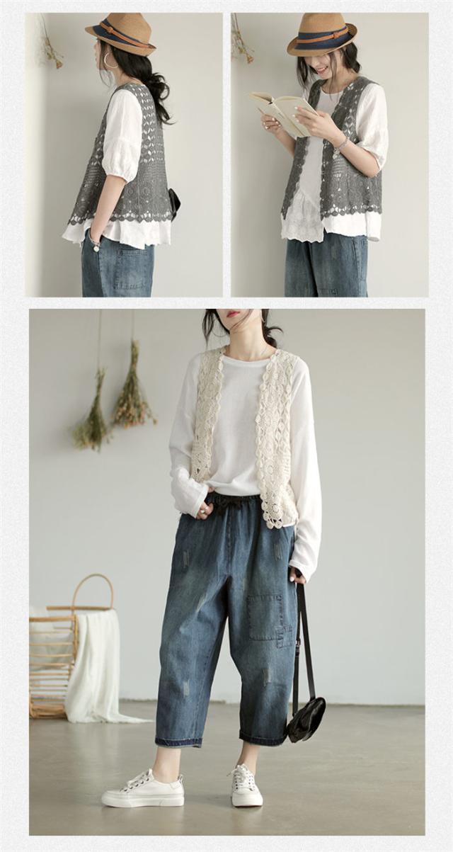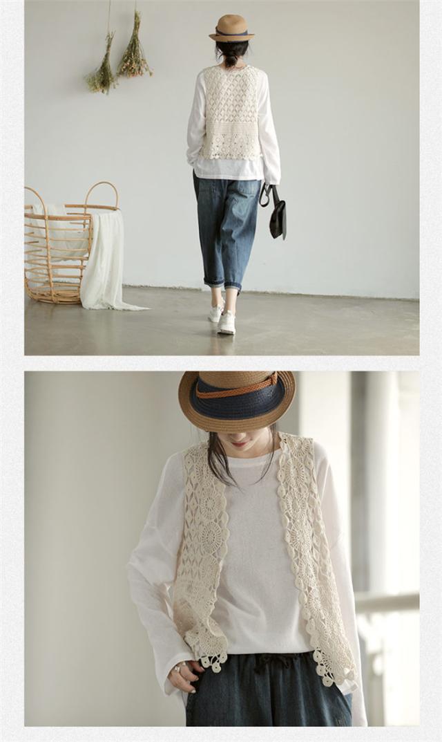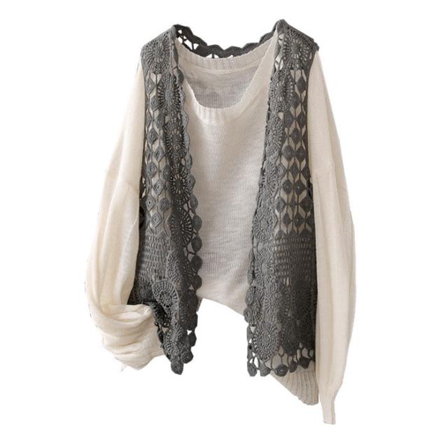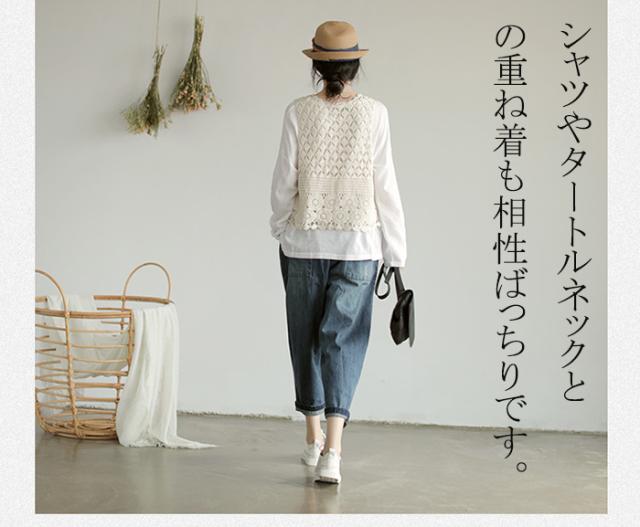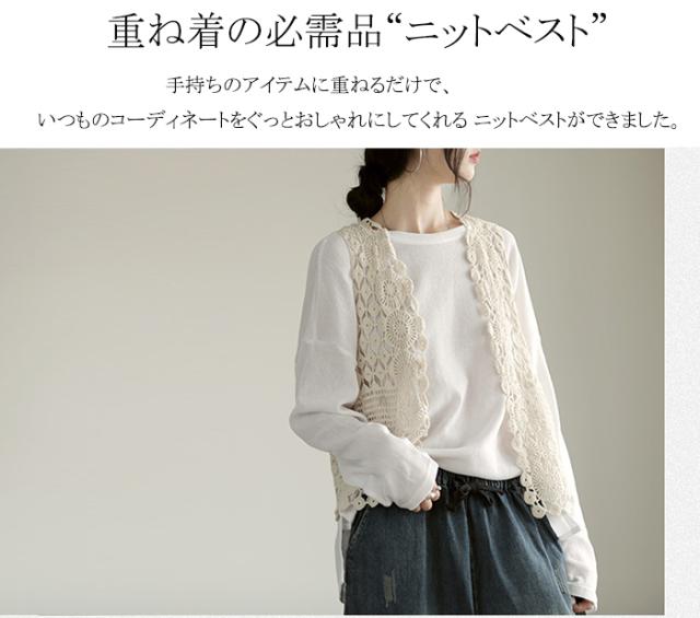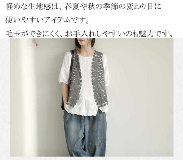 トレンドの透かし編みでインナーとのレイヤードスタイルを楽しめるレースベスト。