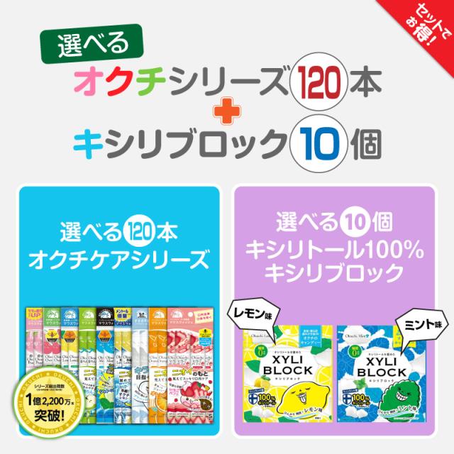 オクチシリーズ 【選べる120本+選べるキシリトール10個】 マウスウォッシュ 口内洗浄液 液体ハミガキ すすぎ不要 汚れ 口臭 磨き残し ノンアルコール 持ち運び キシリブロック あめ アメ こども 虫歯 甘い 爽快感 歯磨き ノンシュガー