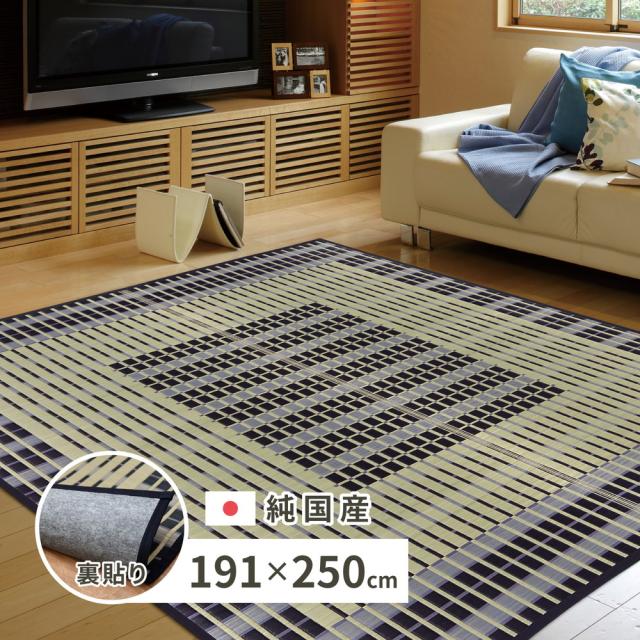 い草ラグ(裏張りあり) RKS 約191×250cm ブルー 日本製 国産 すべり止め 畳ラグ 夏 ラグ い草カーペット イ草 ラグマット 日本製 軽量 傷防止 和モダン おしゃれ 和室 和風 モダン 抗カビ 消臭 夏用