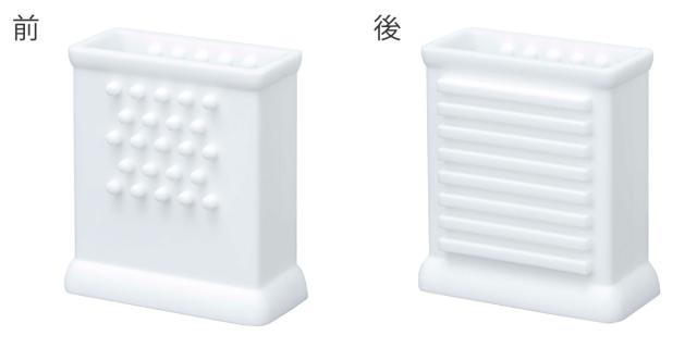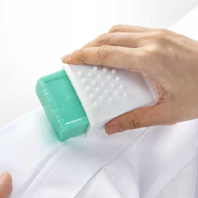 外側には2種類のブラシが付いています。石けんをこするだけでは汚れが落ちない時に便利です。細かい汚れは前面のソフトブラシで、頑固な汚れは、背面の洗濯板タイプのブラシがおすすめです。