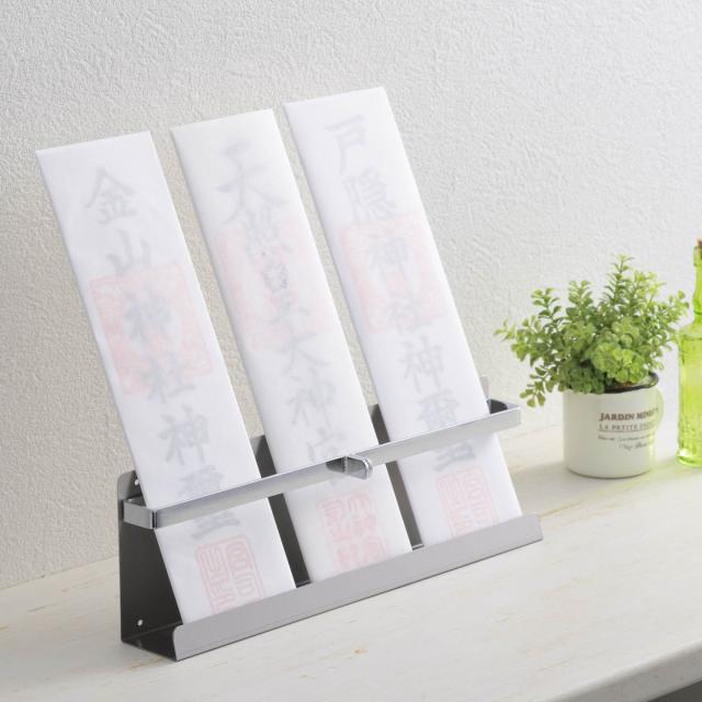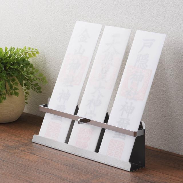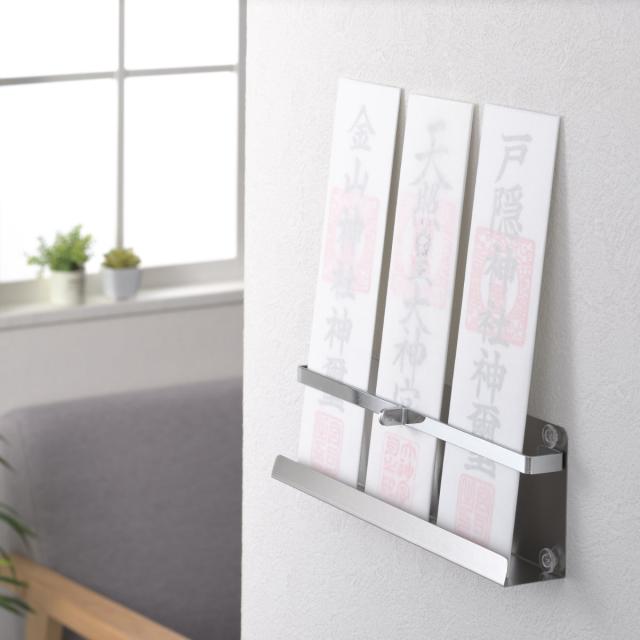 お札立て 日本製のおふだ立て ステンレス 壁掛け 置き型 ( 神棚 神札 神具 札差し 神札立て 3体用 複数枚 リビング 玄関 札入れ 御札立て お神札受け お札入れ お札 御札 おふだ 御神札 簡易神棚 破魔矢 お守り )
