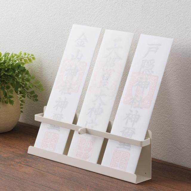 神棚がないご家庭で、置き場に困る神札を立て掛けられる「おふだ立て」です。神札を3体並べて収納できます。リビングや玄関など、いつでも見える場所に大切にお祀りできます。