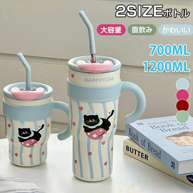 タンブラー 水筒 ストロー飲み 700ml 1200ml 大容量 肩掛け キッズ水筒 子供水筒 おしゃれ 持ち運び 真空断熱 保温 保冷 マグボトル 水筒 直飲み ステンレス コーヒーカップ 車載せでき オフィス アウトドア キャンプ スポーツ 知育園 運動会 プレゼント