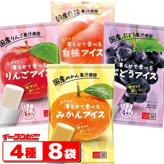 【特価】谷尾食品 国産果汁使用 おうちで凍らせて食べるアイス 4本入 4種各2袋(計8袋) (アイス32個分) 【みかん・りんご・ぶどう・白桃】 シャーベット