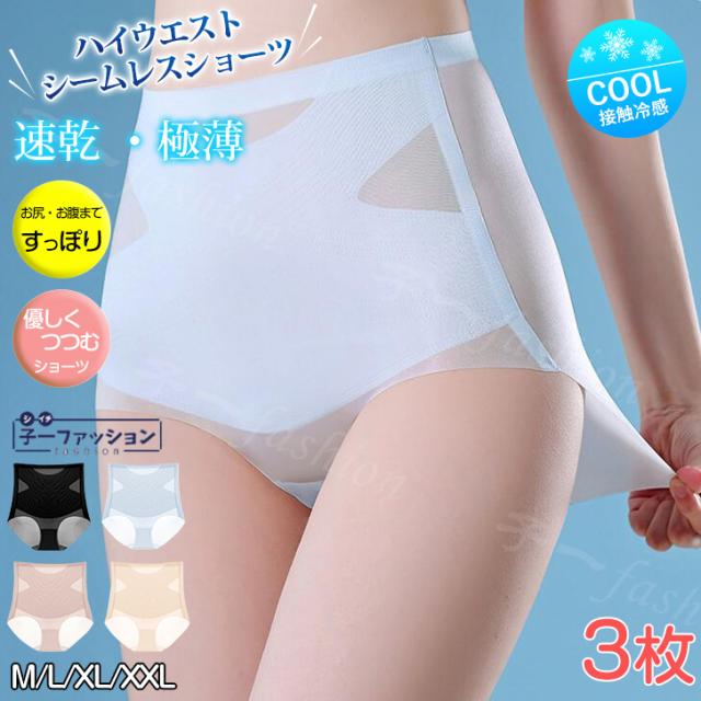 [3枚セット] 響かない! ショーツ シームレスショーツ 極薄 シームレスハイウエスト 春新作 新作 アイスシルク ヒップアップ 腹部の引き締め レディース シームレス 涼しい 夏服 シームレスショーツ ヌード感 涼しい 通気性 補正 インナー 下着 秋冬 バレンタイン