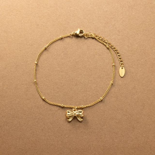 【ゆうパケットOK】 ステンレス製 アンクレット 金属アレルギー つけっぱなし サージカルステンレス レディース リボン チェーン リボンモチーフ メタルリボン ステーションチェーン ボールチェーン 大人 華奢 ゴールド outlet