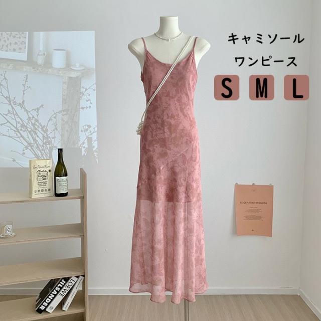 キャミワンピ キャミソール ワンピース レディース 夏 ロングドレス 花柄 女性らしさ溢れる 夏ワンピ ビーチ 旅行 海デート リゾート 大人可愛 ピンク