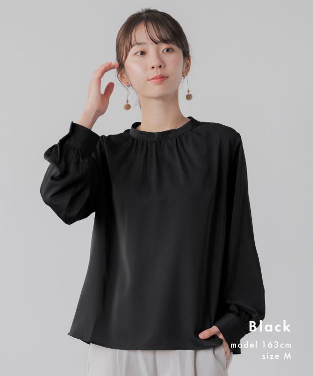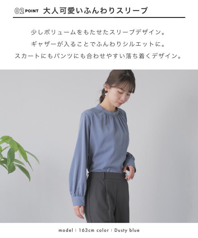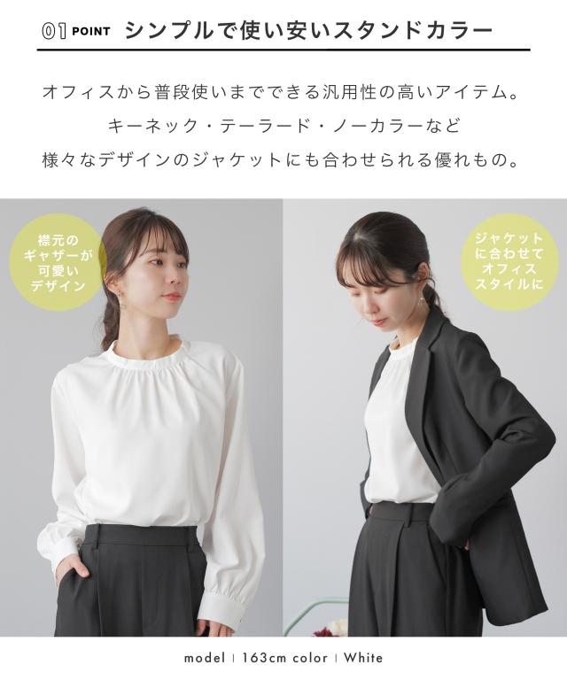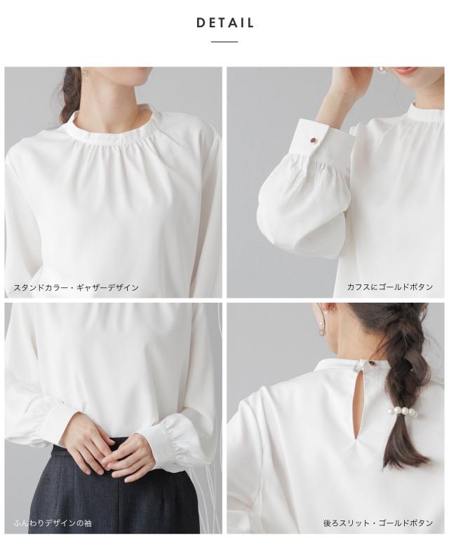 ブラウス 長袖 レディース スタンド オフィス きれいめ 洗える ギャザー ウォッシャブル 仕事 ビジネス 二の腕カバー 細見え 一枚着 春 フォーマル セレモニー カフス とろみ マットサテン入園 入学 卒園 卒業 式典 クルーネック スタンドカラー 20代 30代 40代 50代 60代