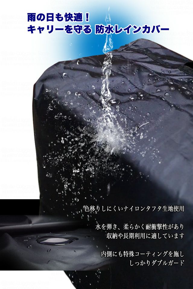 雨の日も快適!キャリーを守る 防水レインカバー 色移りしにくいナイロンタフタ生地使用 水を弾き柔らかく耐衝撃性あり 収納や長期利用に 内側にも特殊コーティングを施しダブルガード