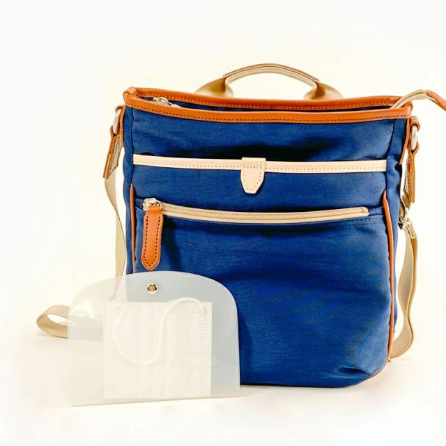 正面ポケッットの内装生地に『CRENSE』製の抗菌・抗ウイルス生地を。 外装はナイロン生地。アルコール耐性素材の為、除菌スプレーの吹きかけもできる安心仕様。 さらにロゴ入りのマスクホルダーも付属。