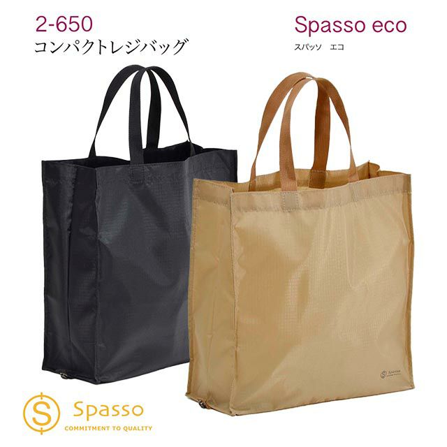 エコバッグ Spasso スパッソ ECO コンパクト レジバッグ エコバック サブバッグ トートバッグ 収納 折り畳める 大容量 底板 ショッピング