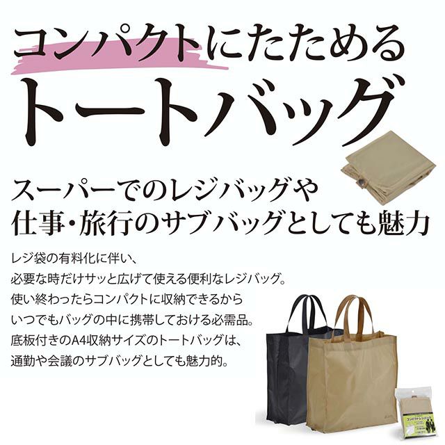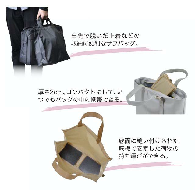 底板付きのA4収納サイズのトートバッグは、 通勤や会議のサブバッグとしても魅力的。