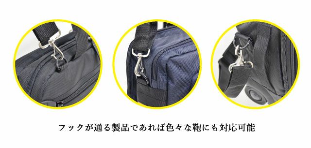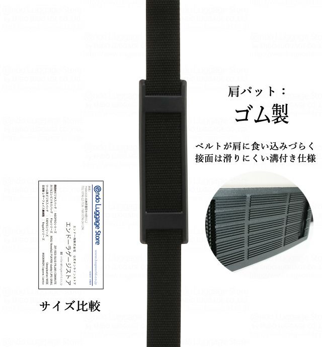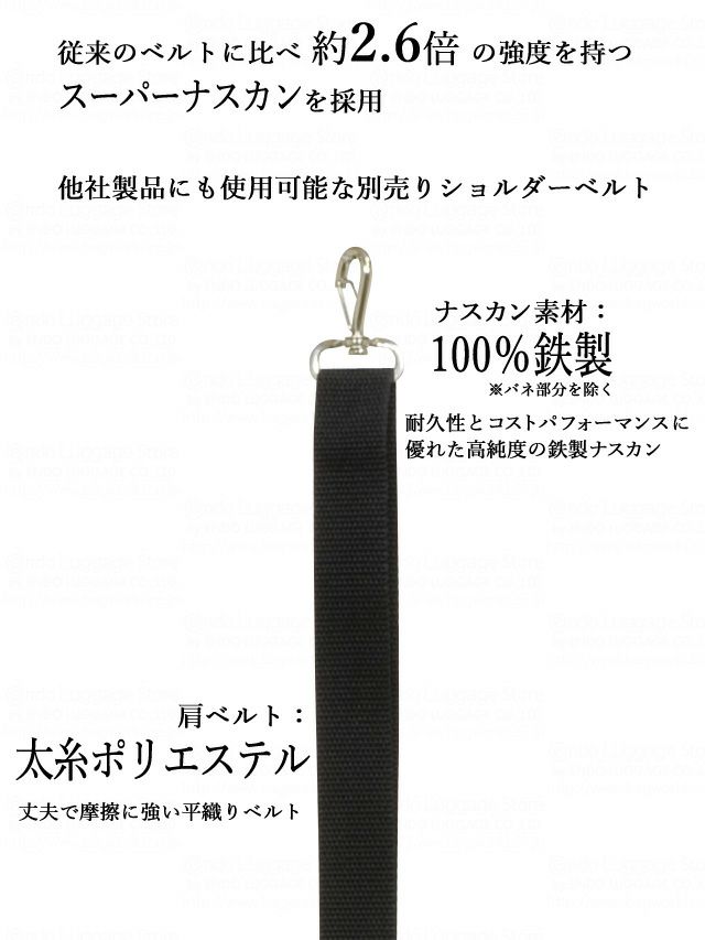 従来のベルトに比べ約2.6倍の強度を持つ スーパーナスカンを採用し、 他社製品にも使用可能な別売りショルダーベルト。