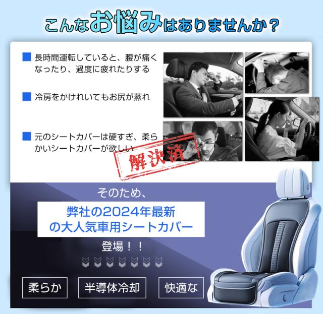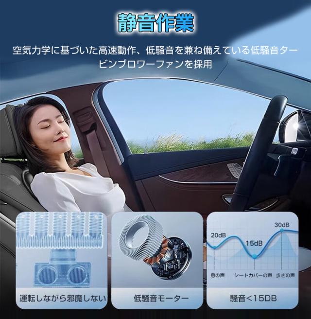 【夏のドライブの新常識!&強力ファン&パワフル送風】2024年に夏を満喫するための究極のクールシート対応策を探しました!丁寧な開発企画、ファンの数が多ければ多いほど風が通り、通気効果が良くなるという古い考えを超え、超強力デュアルボールベアリング大型ブロワーファンを作りました!シートカバー下部のファンだけで吸い込んだエアコンの冷たい空気を座面、バックさらに首元に届けます。1枚の大型ファン、高速回転でファンの動きによって風の抵抗を効果的に低減し、回転速度が8000回転/分に達し、1枚は8枚小型ファンに相当します。ソート構造を最適化し、冷風量が従来より倍増! 涼しさをつくり、蒸し暑さに別れを告げ、熱い夏でもドライブ快適♪※メジャー採寸の為、サイズが多少異なる場合がございます。予めご了承ください。