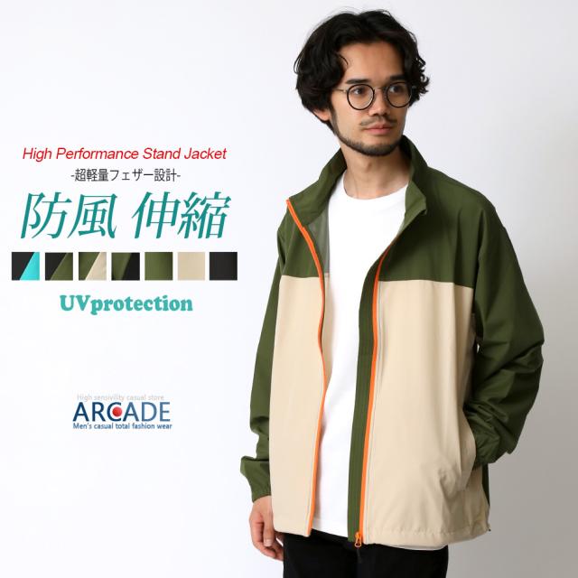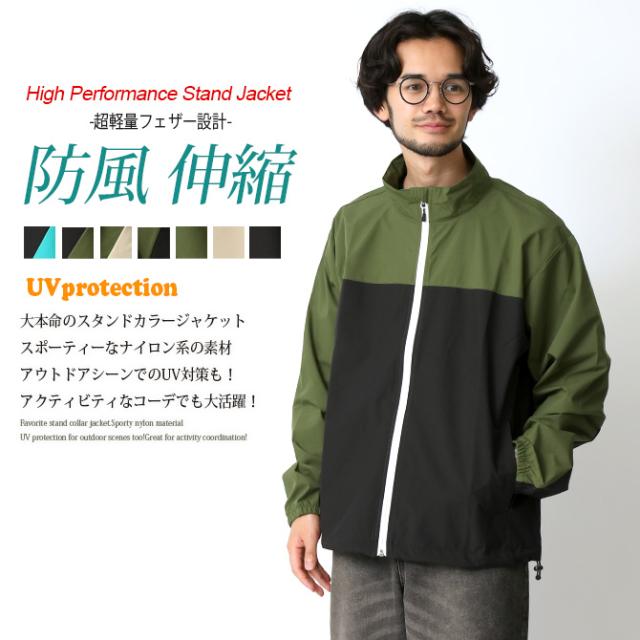 ジャケット メンズ ナイロンジャケット 撥水 防風 伸縮ストレッチ ウィンドブレーカー バイカラー スタンドジャケット ブルゾン ジャンパー マウンテンパーカー