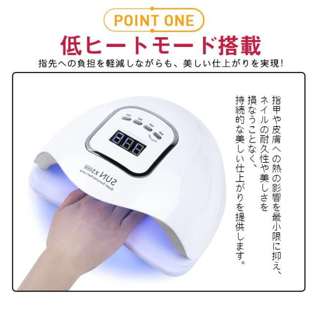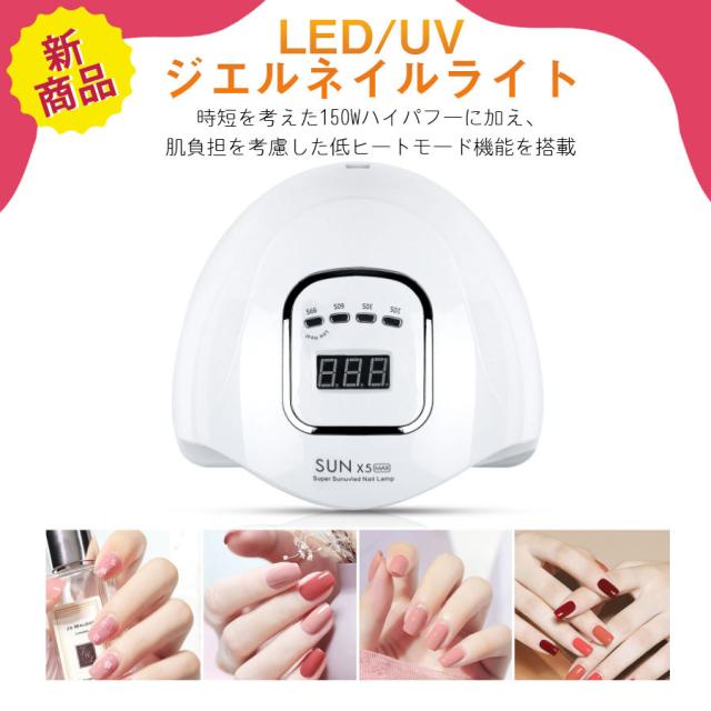 【ハイパワー150Wで高速硬化可能】 ネイルドライヤーは目にもお肌にも優しい最速ダブル光源技術を採用しています。従来品よりも2倍速くジェルネイルを硬化させます。約365?405nm広いLED対応周波数でUVジェルなどほぼ全てのジェルを硬化可能です!また、フットジェルやレジン液などあらゆる種類のUVおよびLEDジェルネイルポリッシュに対応しています。家庭やサロンでの使用に最適です。