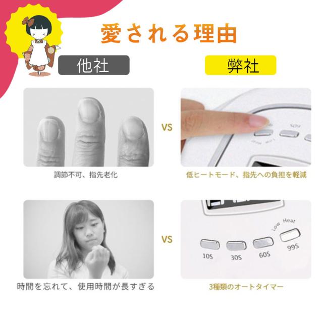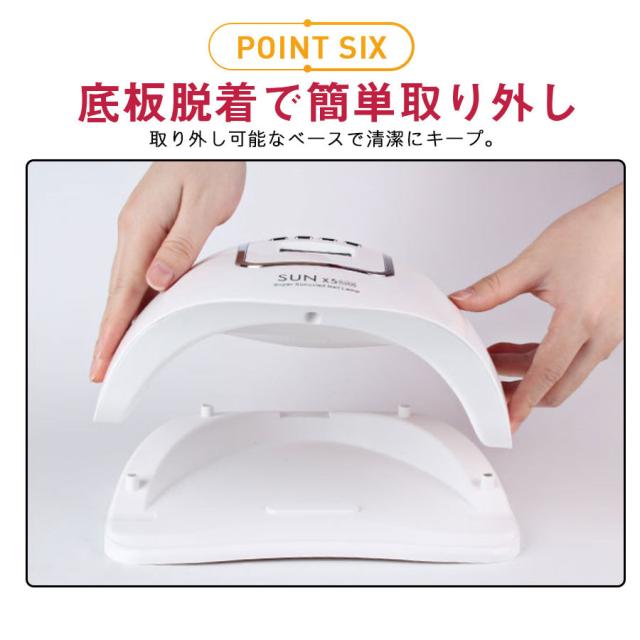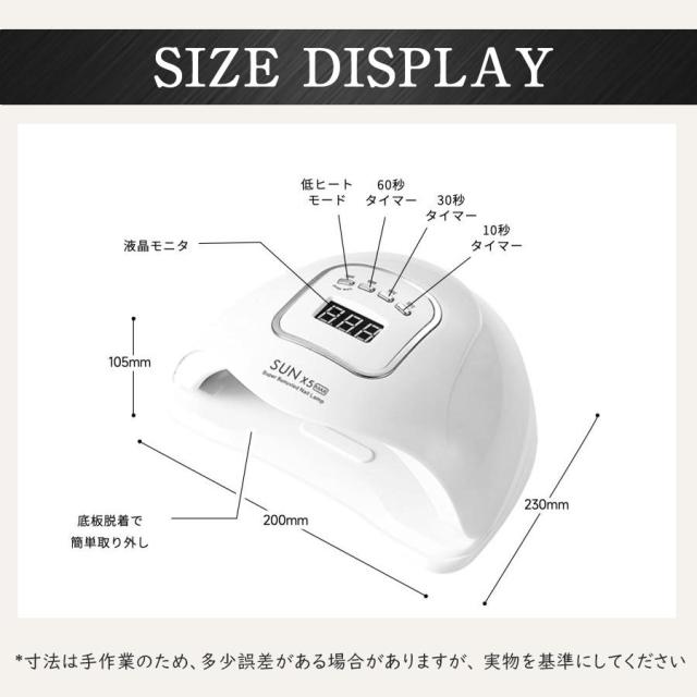 - 以前使っていた物がコードの接触が悪くなってしまった為買い替えました。時間も選べるし、残りの秒数も出るので分かりやすいです。底板も外す事が出来ます。硬化も問題なく出来ました。