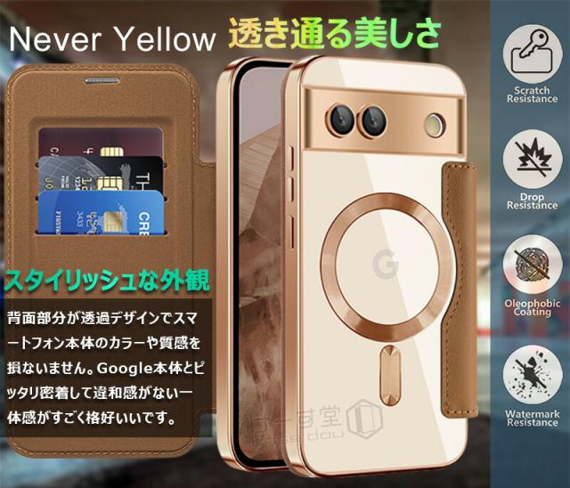 背面クリア Google Pixel 10pro XL ケース 手帳型 全面保護 RFID スキミング防止 Google Pixel 9a カバー カード収納 シンプル 軽量 薄型 ピクセル 8a 7a カバー pixel9 pro XL 透明ケース カメラ レンズ保護 ブック型 おしゃれ メッキ加工 バンパー magsafe ワイヤレス充電