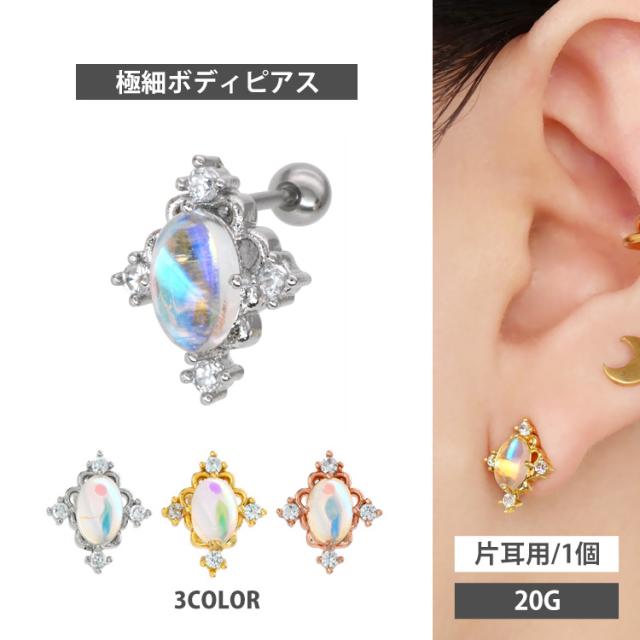 ピアス 軟骨 ボディピアス ジュエルフレームオーロラストーンバーベル 20G ストレートバーベル