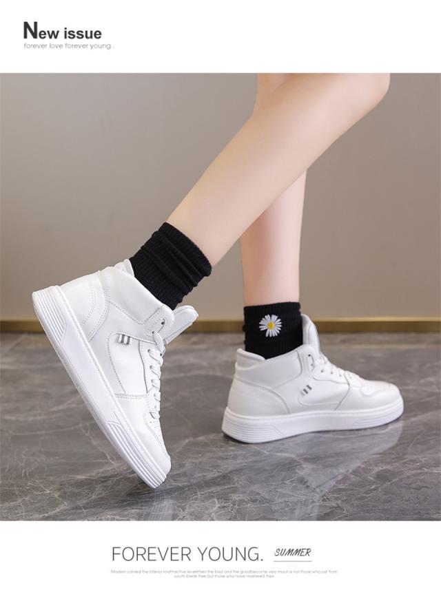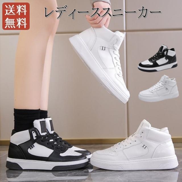 スニーカー レディース 厚底靴 ハイカット レースアップ フラットスニーカー 防水 滑り止め 軽量 通気性 通勤 通学 カジュアル