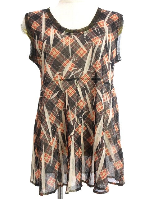 【中古】t.b ティービー センソユニコ チュール チュニック チェック 40 ベージュ系 ノースリーブ トップス