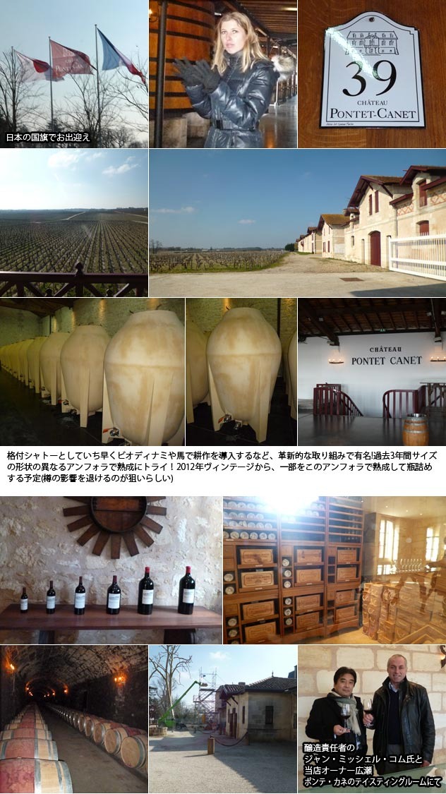 【WMのジェイムス・ローサーいわく、最近、ボルドー愛好家の間で、ポンテ・カネが2つの点で話題になっている。1つはワインの質が劇的に向上していること。そしてもう1つは、葡萄畑をビオディナミで管理していることである。私の知る限りは、ポンテ・カネは格付シャトーの中で、この大胆な方針を打ち出した唯一のシャトーである。最も改善されたシャトー10傑のひとつにムートン・ロートシルトやオーゾンヌ、パヴィとともにベスト10に選出しています。