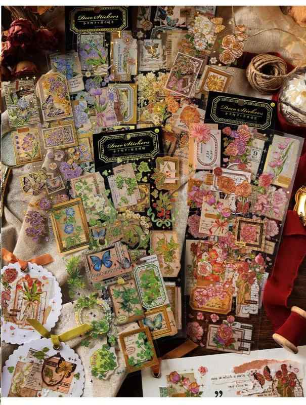 コラージュ 素材 シール ステッカー おしゃれ 手帳シール フレークシール 防水 大量 かわいい 花 蝶 (花と蝶4)