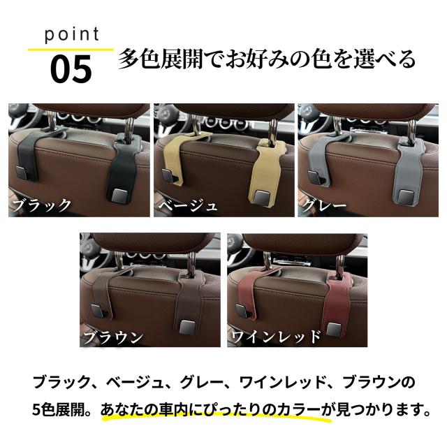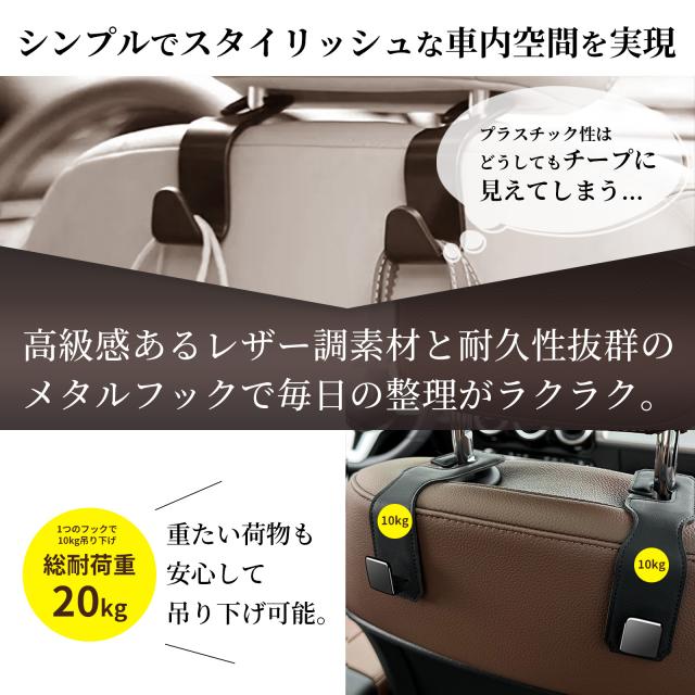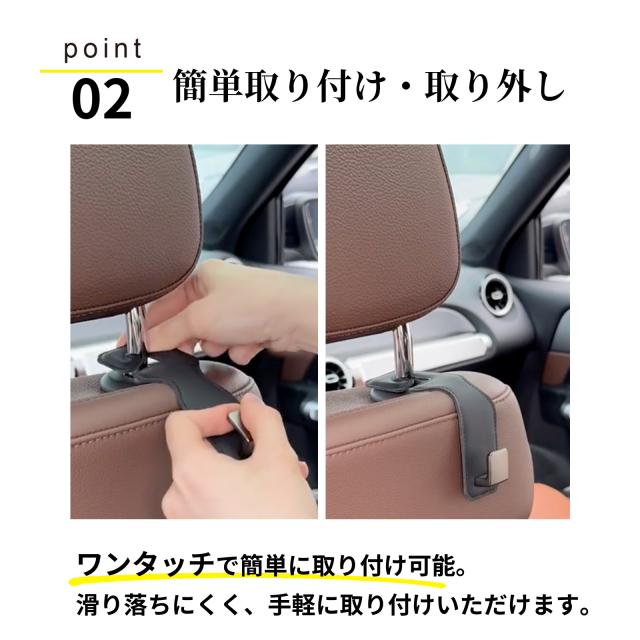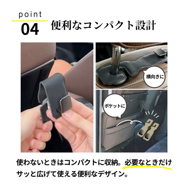 | (1) 【誰でも簡単装着 車載フック】 車内のヘッドレストに簡単に装着が可能! 使わない時は横向きにして収納が可能なので邪魔にならない便利設計! フックの大きさも大きすぎず使いやすいコンパクトサイズになってます。 フックはレザー調で柔らかな設計なので車のヘッドレストを傷つける心配はありません。 (2)【車内を快適&便利に車 ヘッドレスト フック】 買い物袋や通園バッグなどを足元に置くと汚れが目立ってしまいます。 車用フックを使用することで、今まで足元に置いてあった荷物を下に置くことなく利用が可能に! (3)【車の運転中でも安心安全 運転席 助手席 フック】 ミニサイズのコンパクト設計の為、車内やオフィスなどスペースの限られた場所にも 取り付け可能。シンプルなデザインのため外観も損ないません 車用フックを使用することで、運転中の振動で荷物が横に倒れないので 荷物が散らかったり傷つき壊れたりすることを防止します。 (4)【重い荷物にも 車用 ハンガー カバン 引っ掛け シート】 約20kgまでの荷物に対応可能!飲料やお米を購入した際でもご利用いただけます! |