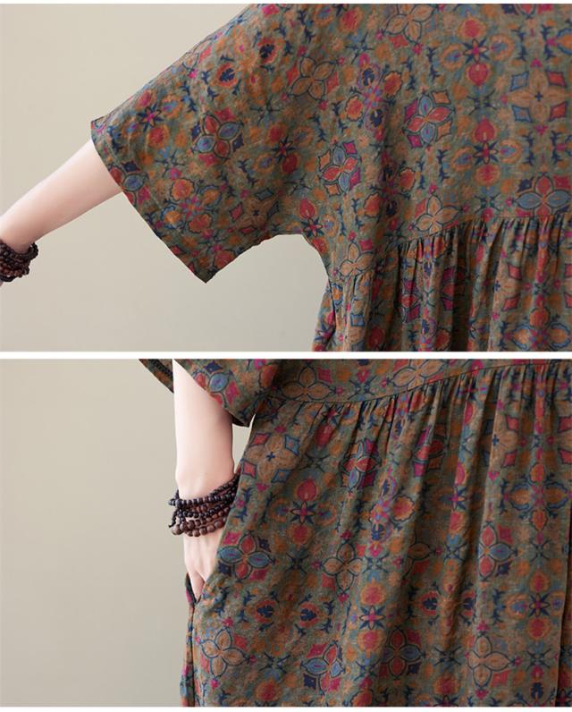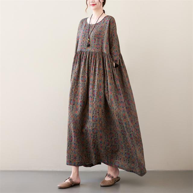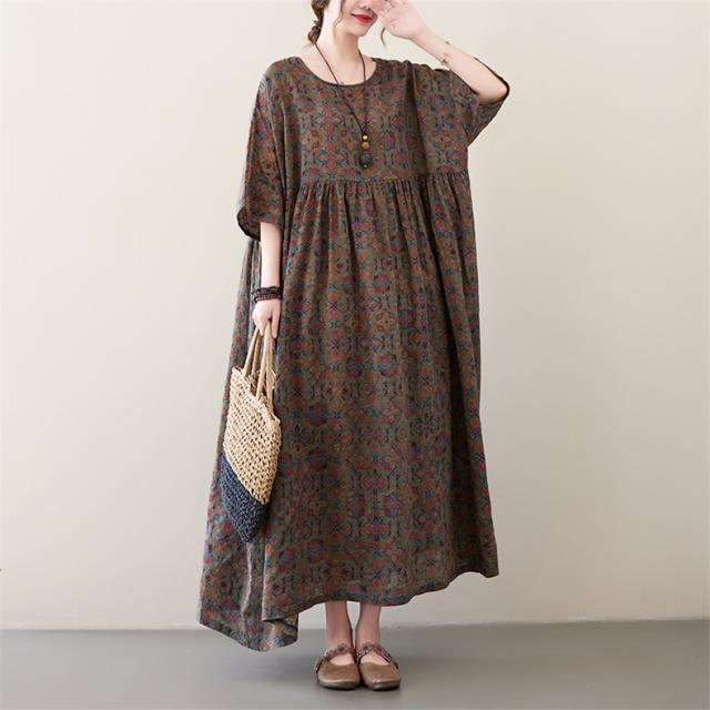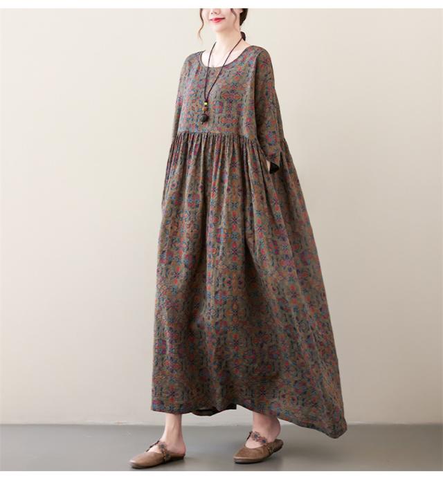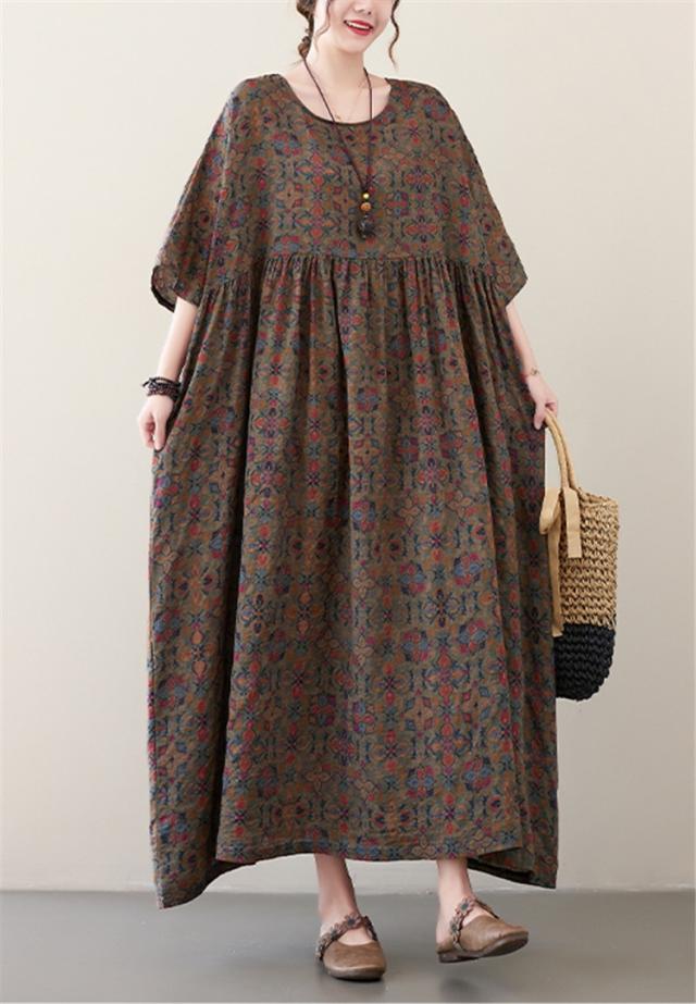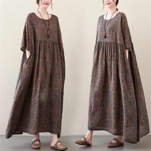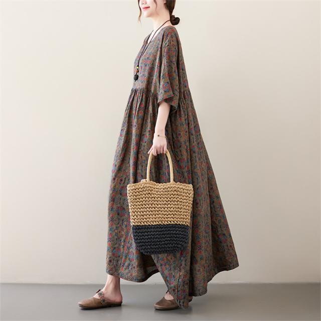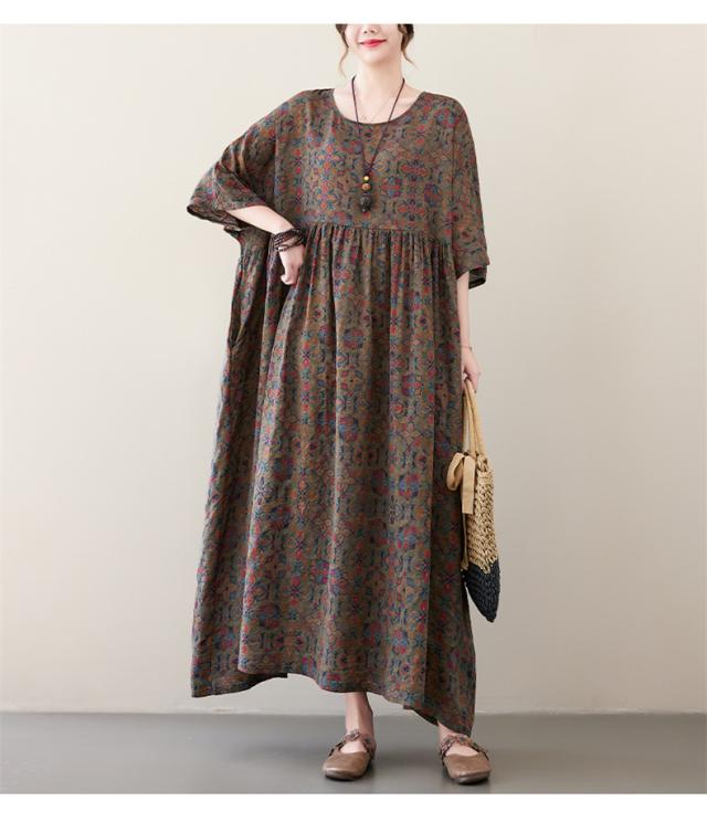 夏ワンピース レディース ロング丈 Uネック フレア ルーズ 綿 大きいサイズ ゆったり 自然に体型カバー 夏ムードを高めるマキシワンピース 大人っぽい