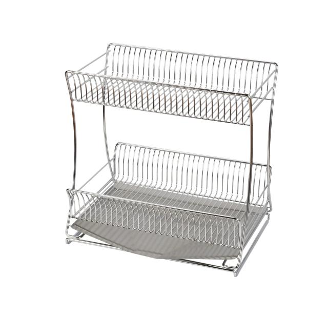製品サイズ:(約)幅40~57×奥行29.5×高さ39.5cm 製品重量:(約)3.8kg 素材・材質:本体・トレー/18-8ステンレス鋼、すべり止め/シリコーンゴム 生産国:中国 耐荷重:(約)上段/3kg、下段/4kg シンク適応寸法:(約)36~53cm