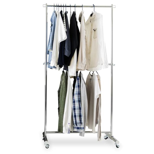 ●総耐荷重:126kg ポール部分耐荷重:60?×2 輪部分耐荷重:3?×2 ※箱には、ポール部分の耐荷重120?のみ記載しております。 上下2段で大量の服を省スペースに整理整頓できます。高さは5cm間隔で12段階に調節可能。