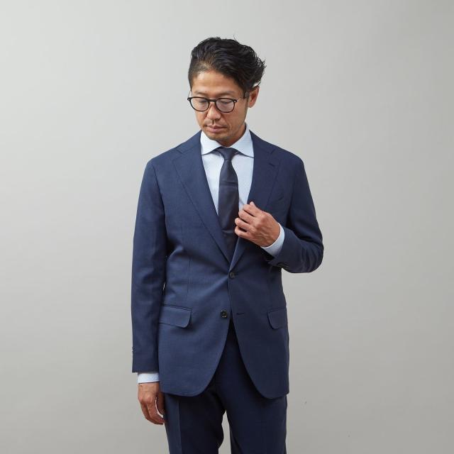 クラシカルでモダンな佇まいを感じさせる機能素材のスタイリッシュスーツです。