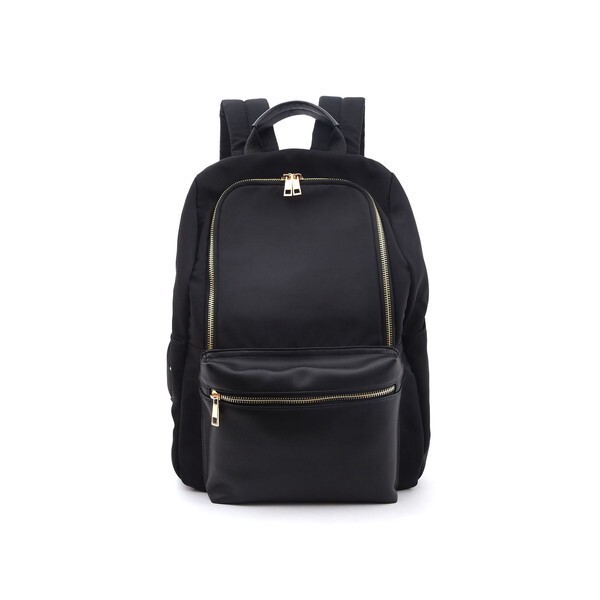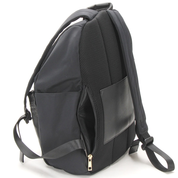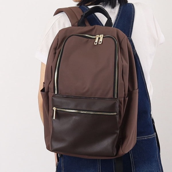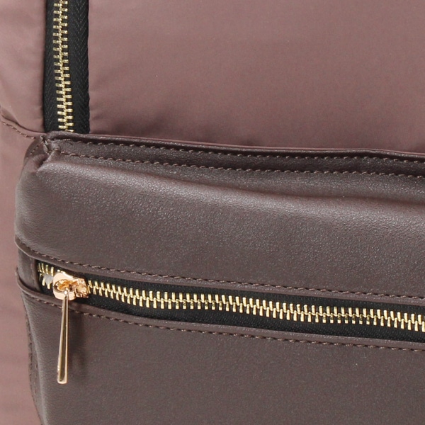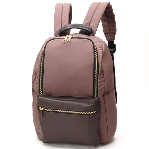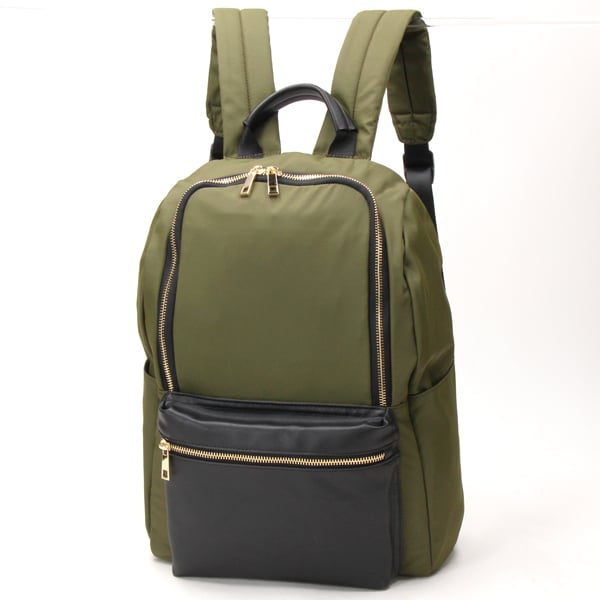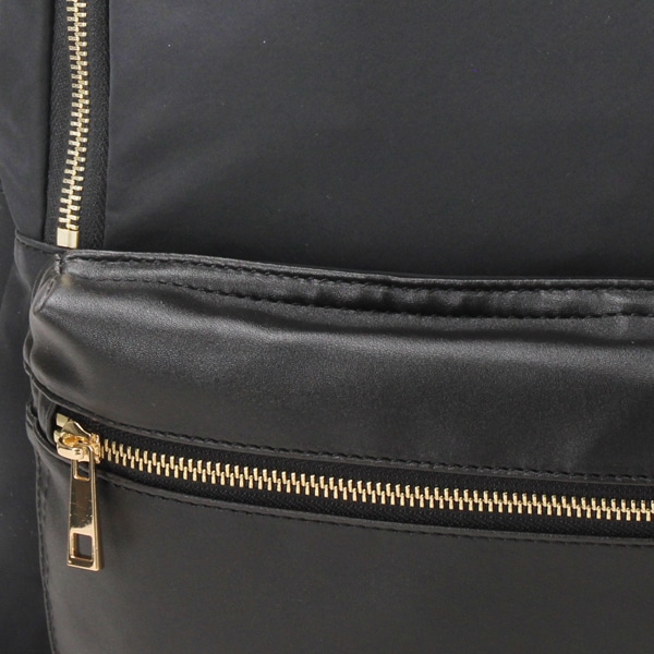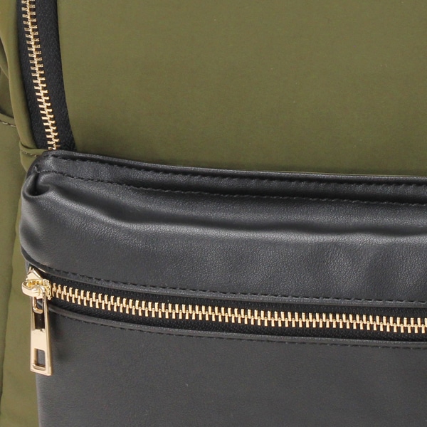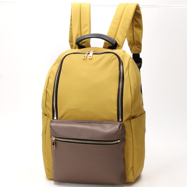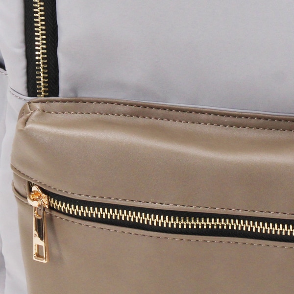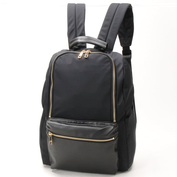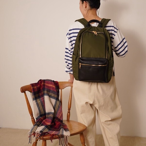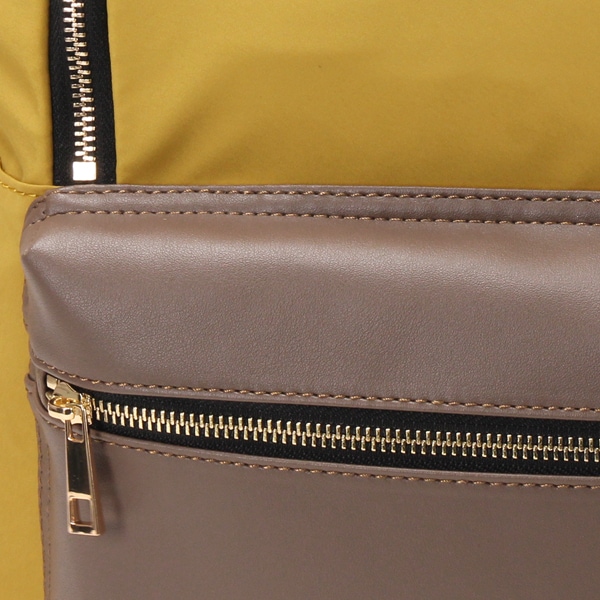 本体は軽量なポリエステル素材。ポケット部分にフェイクレザーを使用することによって、上品さがUPしました!
