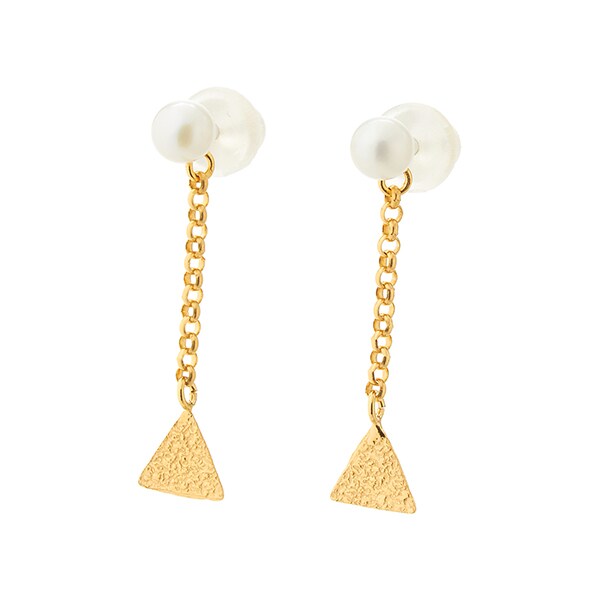 淡水真珠と三角鎚目模様のシルバーピアス