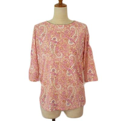 【中古】ドゥクラッセ DoCLASSE カットソー 総柄 ビーズ 七分袖 XS ピンク レディース