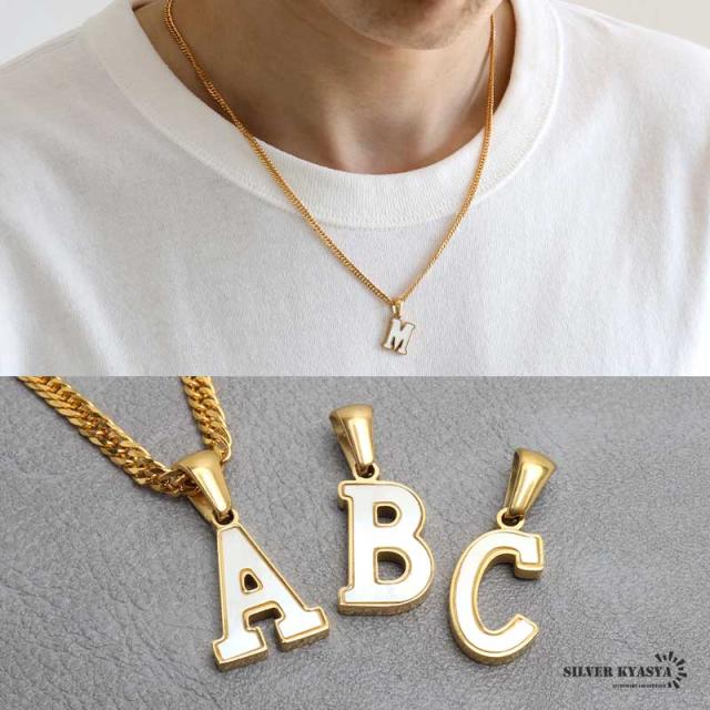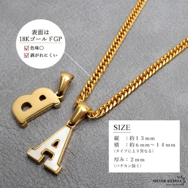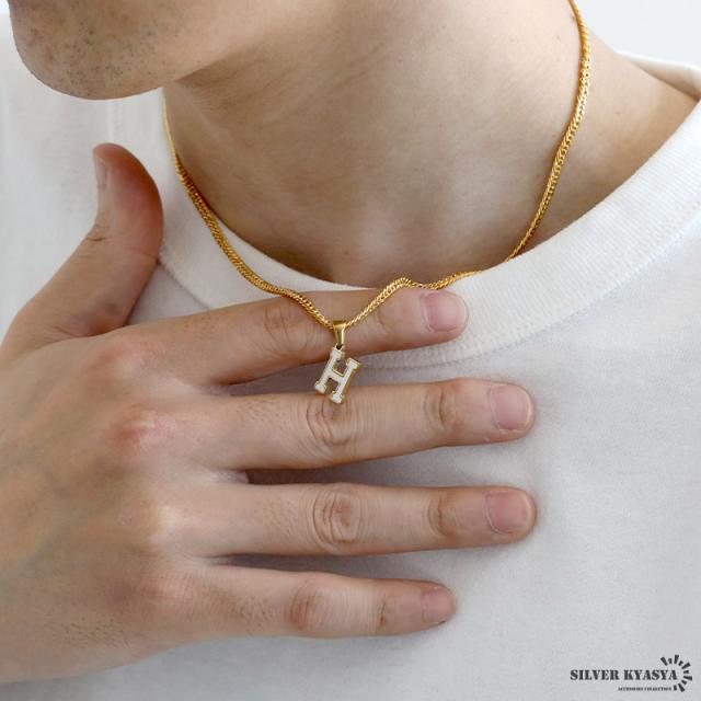 イニシャルネックレス アルファベットネックレス ゴールド ホワイト メンズ メタル シルエット ペンダント ステンレス 18KGP ダブル喜平チェーン 頭文字 小さめ 金属アレルギー対応 HIPHOP ヒップホップ ラッパー rap ダンサー ミュージシャン