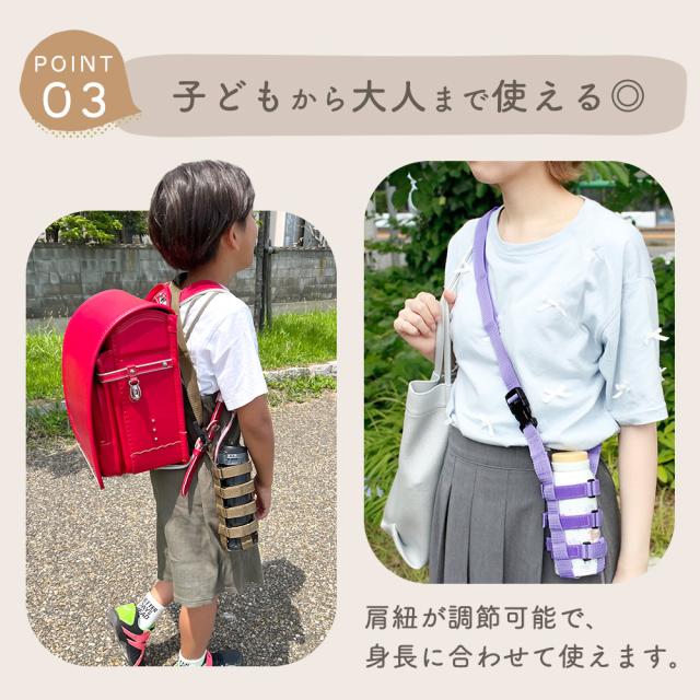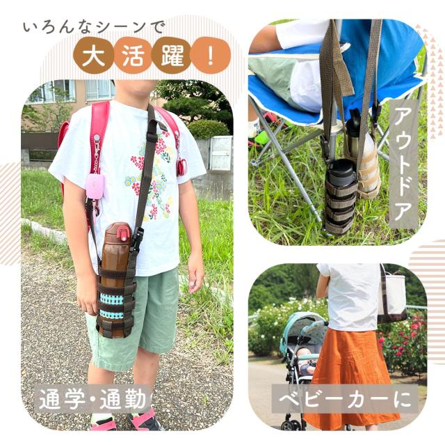 【MILASIC公式】 水筒カバー 肩掛け 子供 おしゃれ 500ml 600ml 1l 肩ひも カバー ショルダー 水筒ホルダー 肩掛けカバー ケース サイズ調節 マジックテープ 肩当て ストラップ 持ち運び 遠足 通園 通学 運動会 マグボトル 哺乳瓶 ペットボトル タンブラー 保育園 幼稚園