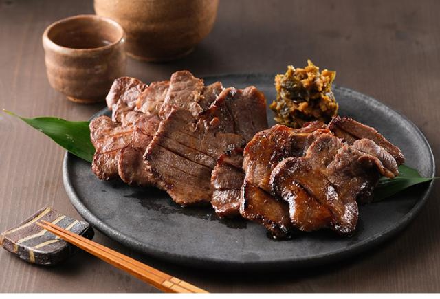 じっくりと熟成・味付けをしたやわらかな牛たんを厚みのあるスライスに仕上げました。仙台名物・牛たん焼き定番の「塩味」と、焼いた時の香りが香ばしい「味噌味」のセットです。