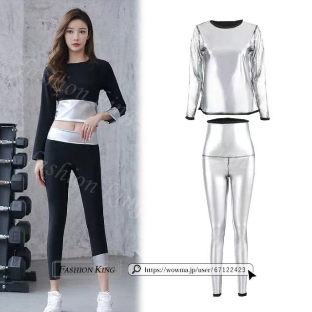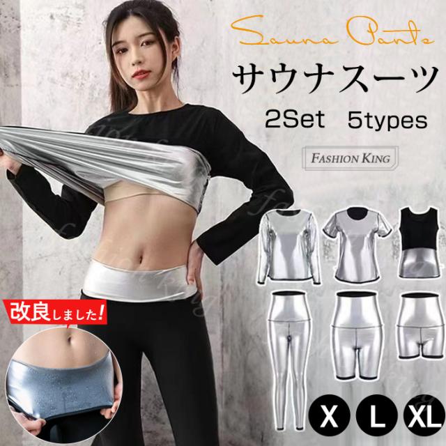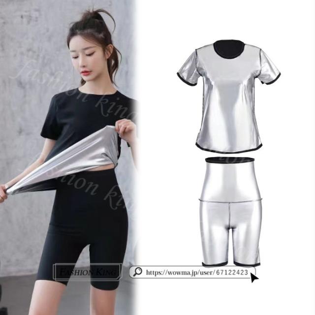サウナスーツ 発汗ウェア 上下2点セット 5分丈 9分丈 レディース 発汗 効果 半袖 長袖 薄い 発汗 減量 引締め 伸縮性 洗濯可能 サウナシャツ サウナウェア ダイエットウェア ホットシェイパー ダイエット お腹 太もも 引き締め セットアップ 入学式 入園式