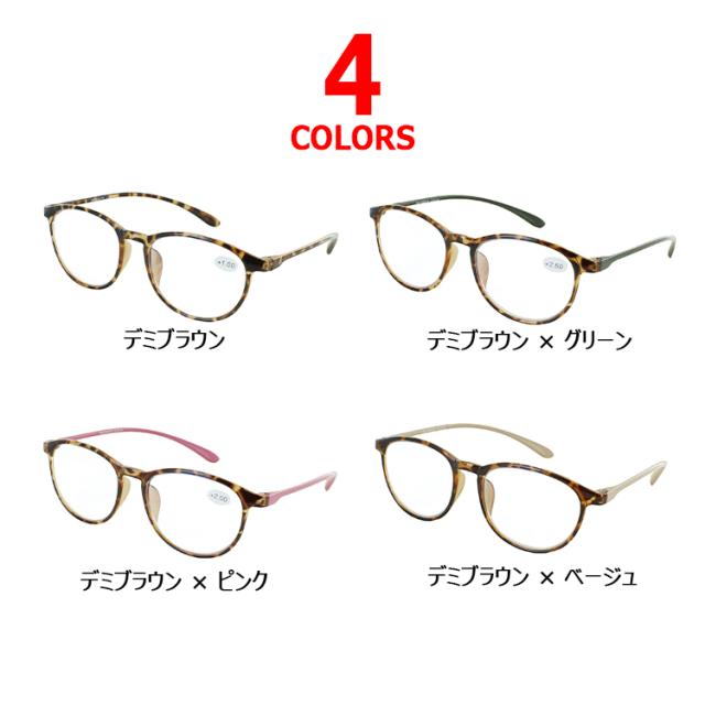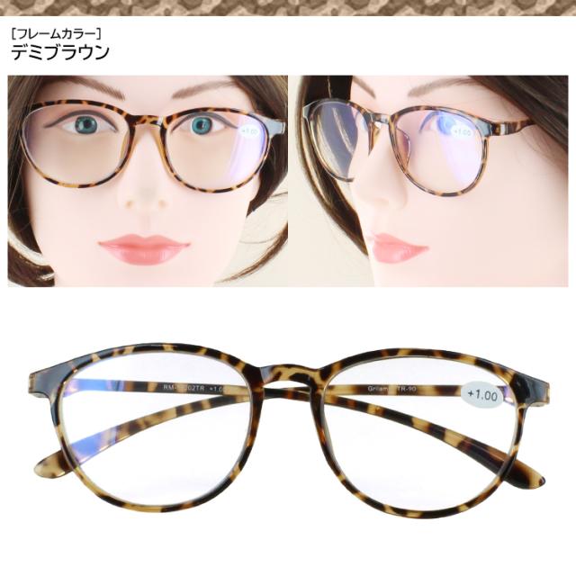 老眼鏡 おしゃれ レディース メンズ ブルーライトカット くもり止め加工レンズ リーディンググラス TR90素材 軽量 セルフレーム 4カラー デミブラウン 6度数展開