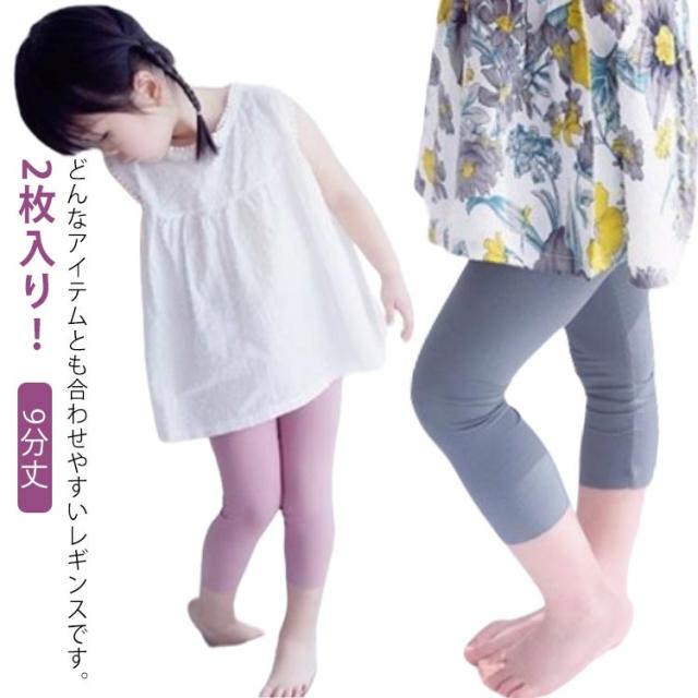 2枚セット!レギンス 9分丈 女の子 ストレッチ スパッツ ペチコート 接触冷感 レギパン ガールズ ベビー キッズ 涼しい 子供服 無地 夏服 ボトムス 部屋着 インナーパンツ アンダーウェア 幼稚園 保育園 アウトドア