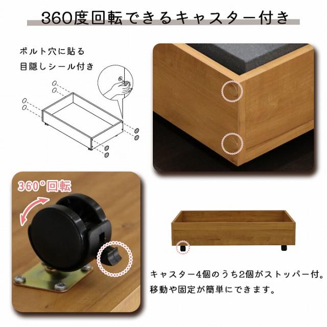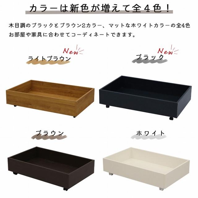 ・ベッド下の空きスペースに納めやすいサイズ感で、底板にはキャスターも付いているため移動や出し入れが簡単です。