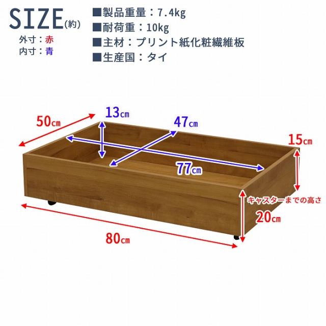 ・製品サイズ(約):幅80×奥行50×高さ20cm ・内寸(約):幅77×奥行47×高さ13cm ・製品重量(約):7.4kg ・耐荷重(約):10kg ・主材:プリント紙化粧繊維板 ・生産国:タイ ・お客様組立品 ※モニターの発色具合により、実際の色と異なる場合がございます。 |