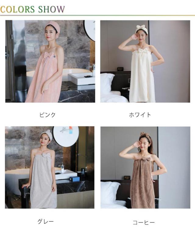 | ボディケアやヘアケアの時短が可能に!簡単に着れるラップバスタオルが新登場! 高品質のマイクロファイバーで作られ、肌触りも良く、大量の水分を素早い吸水できます。 胸元にスナップボタンが付き、後ろはゴムギャザー設計でサイズを調整できます。 しっかり吸水してくれるので、洗濯することも簡単です、洗濯機の利用が可能です。 ふわふわタオルに包まれて、気持ちよく快適にリラックスタイムを過ごしましょう♪ ジムやプール、温泉などでシャワーの後にサッと巻けると可愛いです、両手が自由になります。 | |