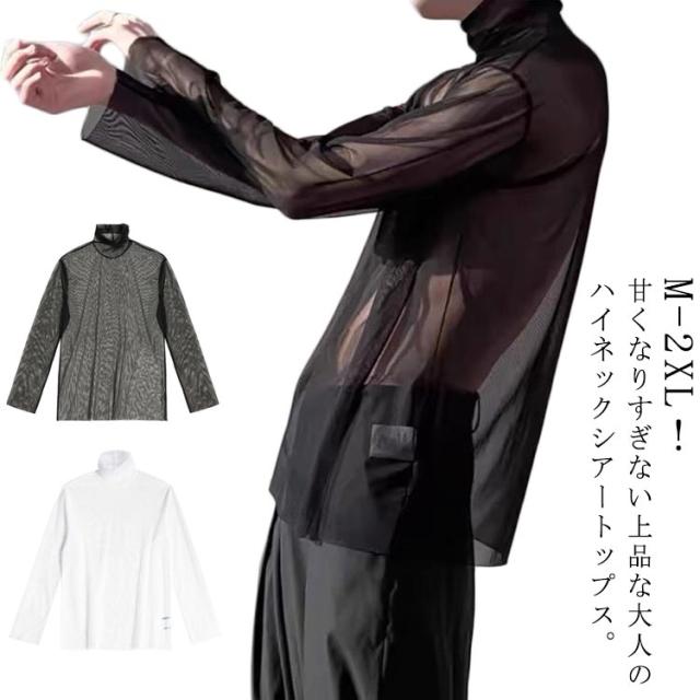 シアートップス おしゃれ メッシュ タートルネック メンズ シースルー シースルー 秋 長袖 インナー 重ね着 メンズ ロンT 黒 シースルー 夏 透け 薄手 カジュアル 透け感 韓国 白 セクシー シアーブラウス シアーシャツ ブラック ホワイト M L XL トップス
