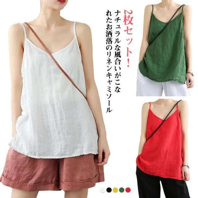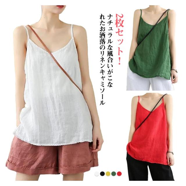 レディース 麻 トップス 下着 リネンキャミソール キャミソール キャミソール 肌着 リネンキャミソール インナー 女性 綿 綿麻 レイヤード 夏 さらさら 吸湿 通気性 快適 リラックス 涼しい 柔らか 涼感 サマー 涼しげ 無地 ナチュラル 春 綿麻トップス 2枚セット
