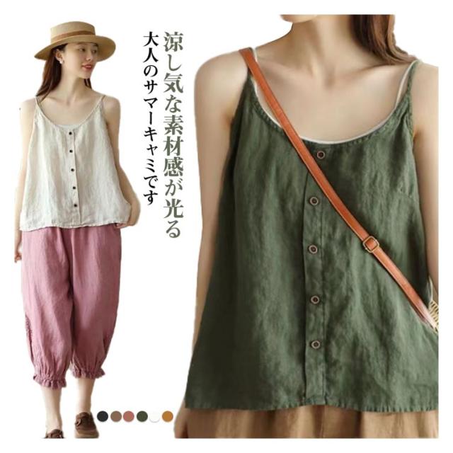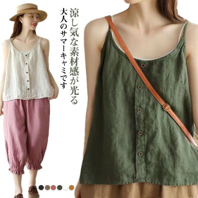 涼しげ 涼感 インナー リネン レディース キャミ 通気性 スリット 麻 ナチュナル感 柔らか リネン サマー 綿 ゆったりサイズ 春 タンク ノースリーブ 肌着 夏 キャミソール さらさら 綿麻 綿麻 レイヤード 女性 吸湿 麻 快適 下着 涼しい