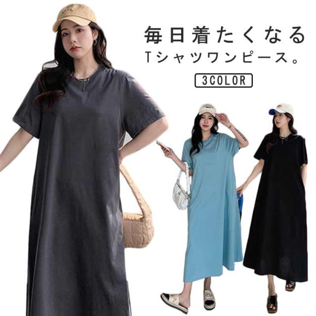 丸首 体型カバー フレア 半袖 ポケット付き ワンピース レディース ロングワンピース マキシワンピース tシャツ 大きいサイズ Aライン Tシャツワンピース 外出 スウェットワンピース ルームワンピース 送料無料