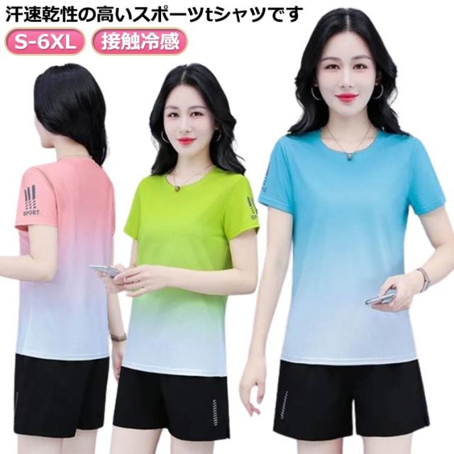スポーツウェア 吸汗速乾 スポーツウェア 半袖 接触冷感 トップス ウェア レディース ジム UVケア トップス Tシャツ 半袖 Tシャツ ストレッチ 吸汗速乾 ウェア フィットネス フィットネスウェア ランニングウェア ウォーキング ジョギング 大きいサイズ